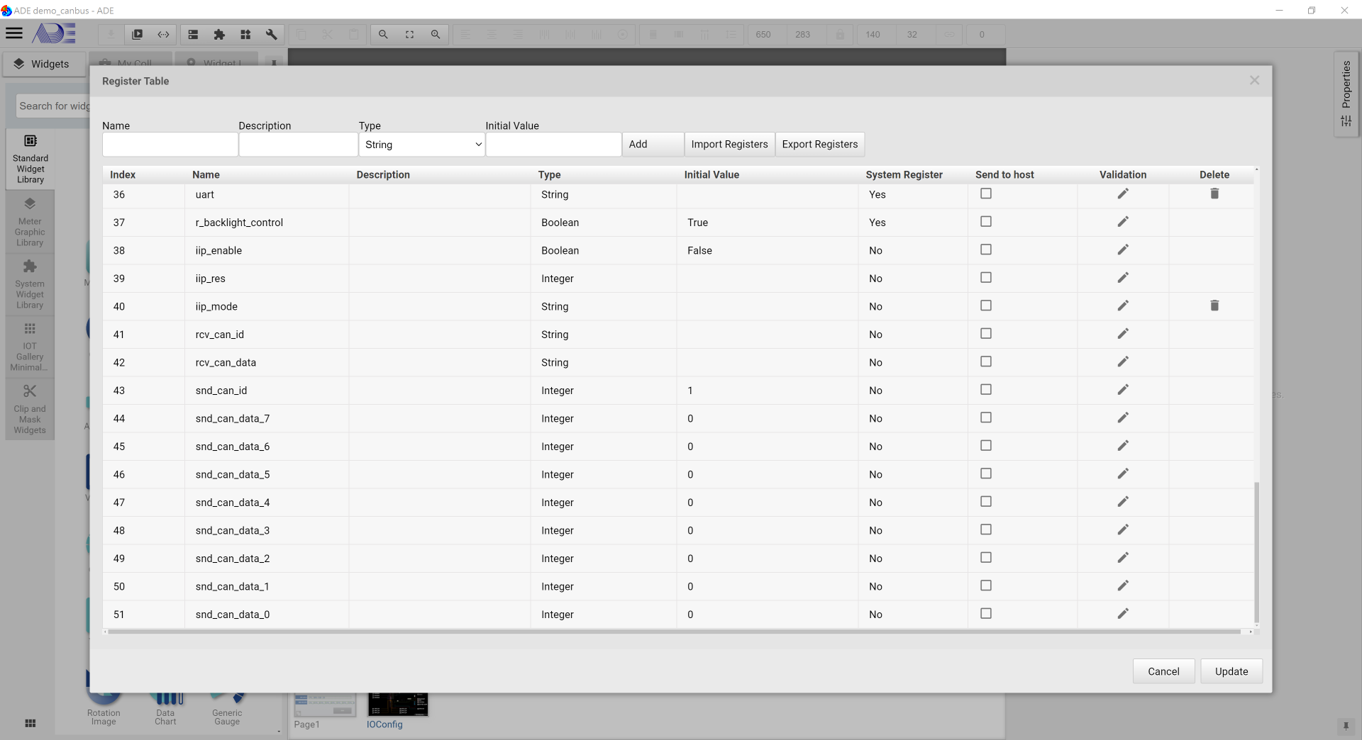-IVL_SND_CAN_DATA: Display the transmit Data.
