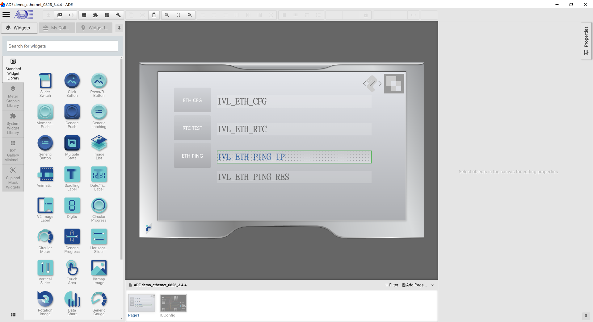 -ETH CFG: Click to trigger an event, the result is shown on IVL_ETH_CFG