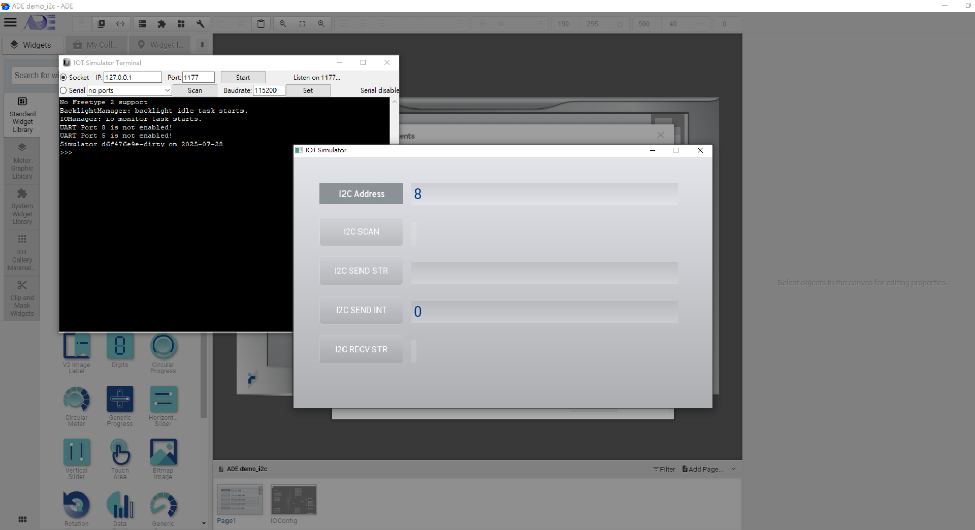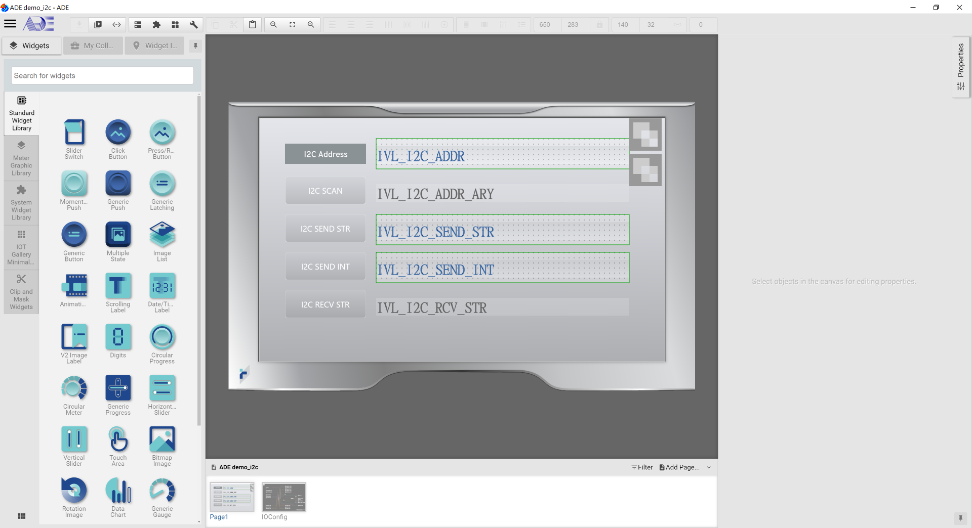 Click the System Menu, press Open and then choose “ADE demo_i2c.epgz”.
