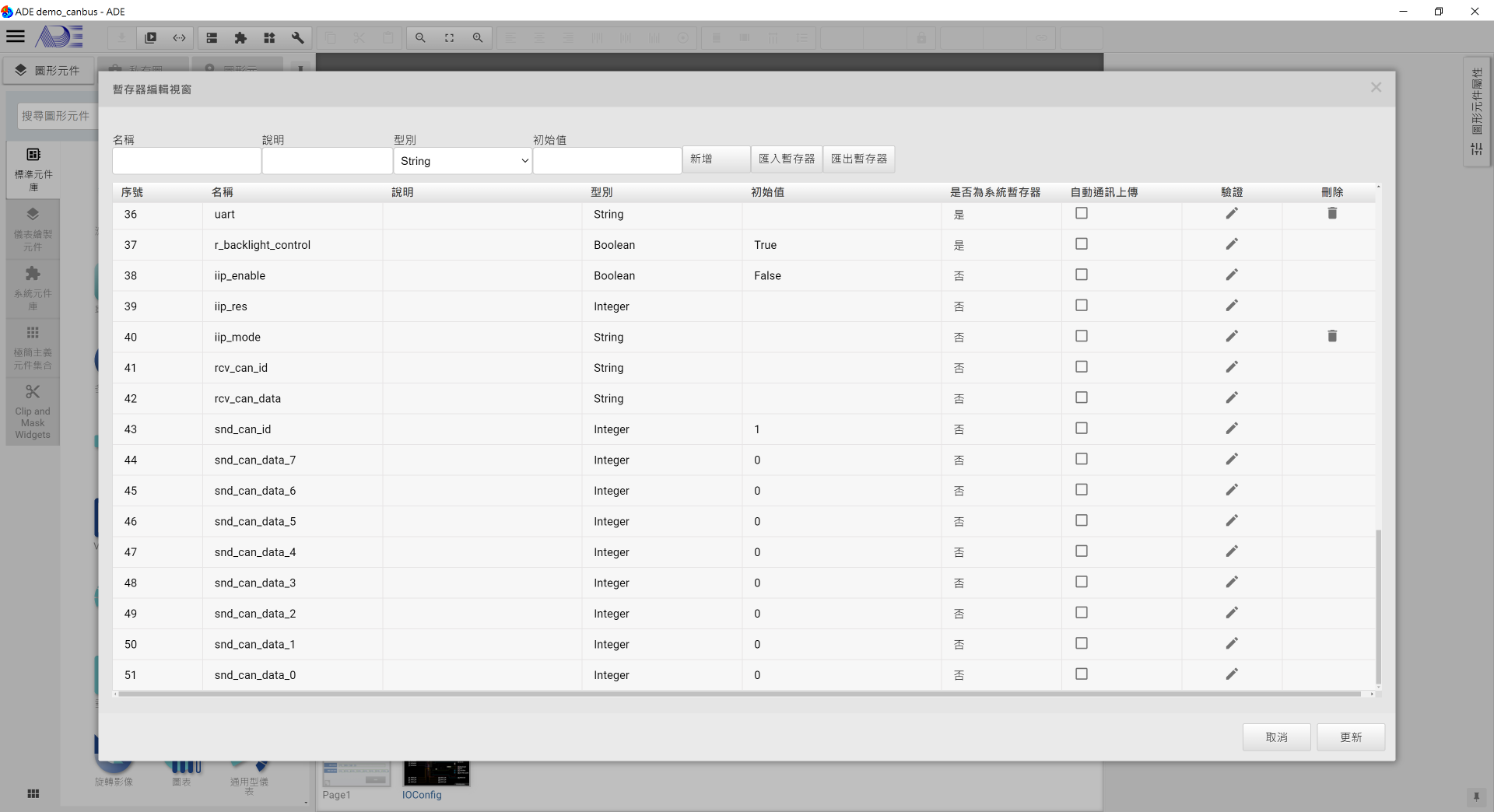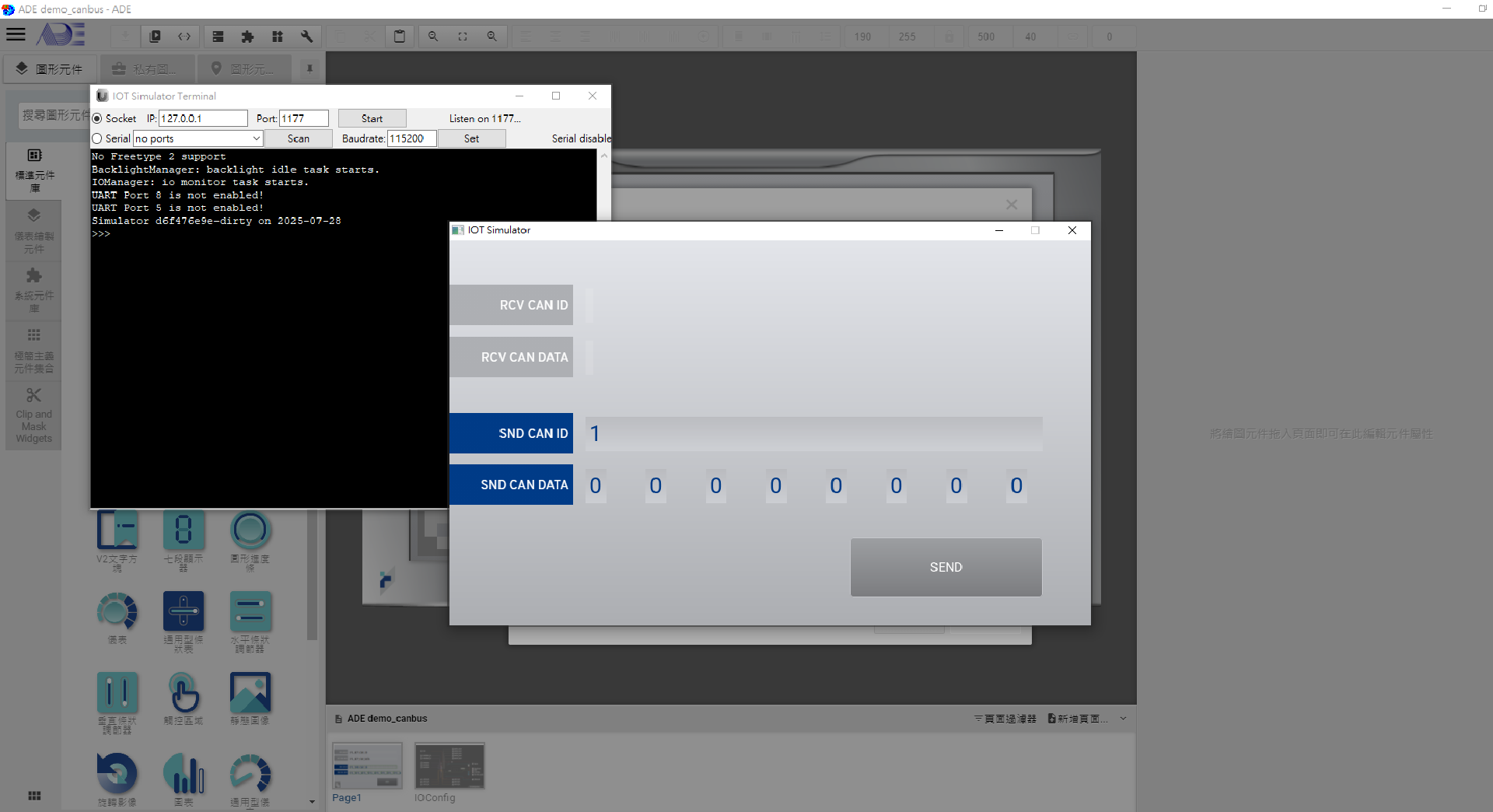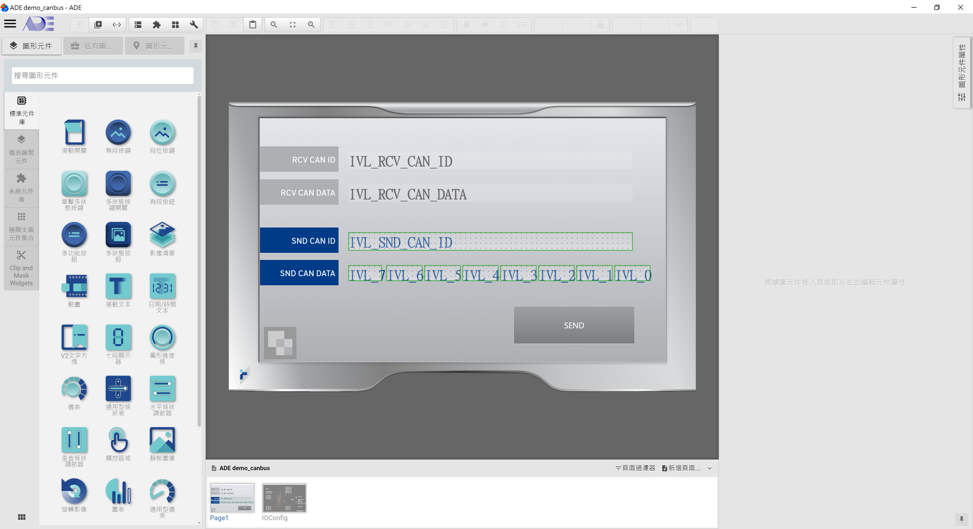 點選 系統選單 > 開啟... > ADE demo_canbus.epgz