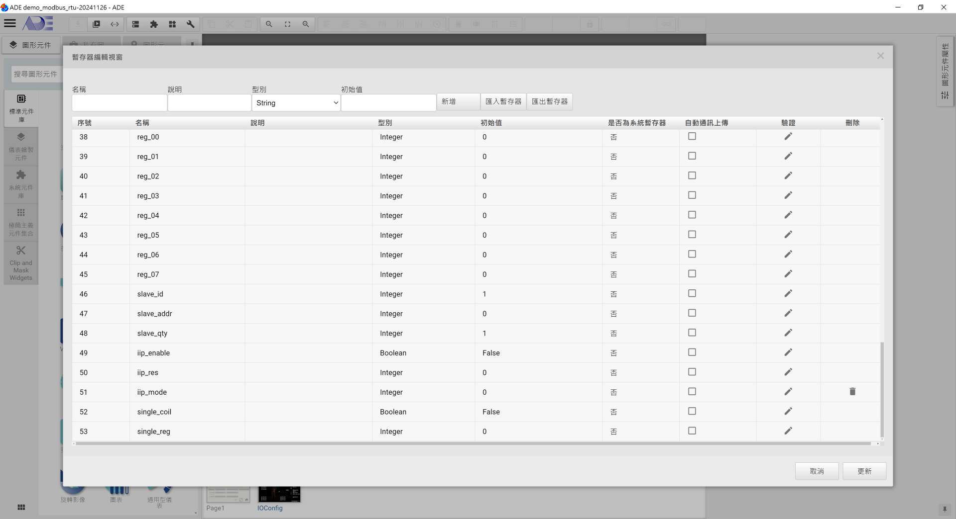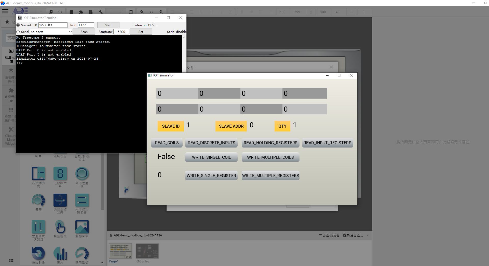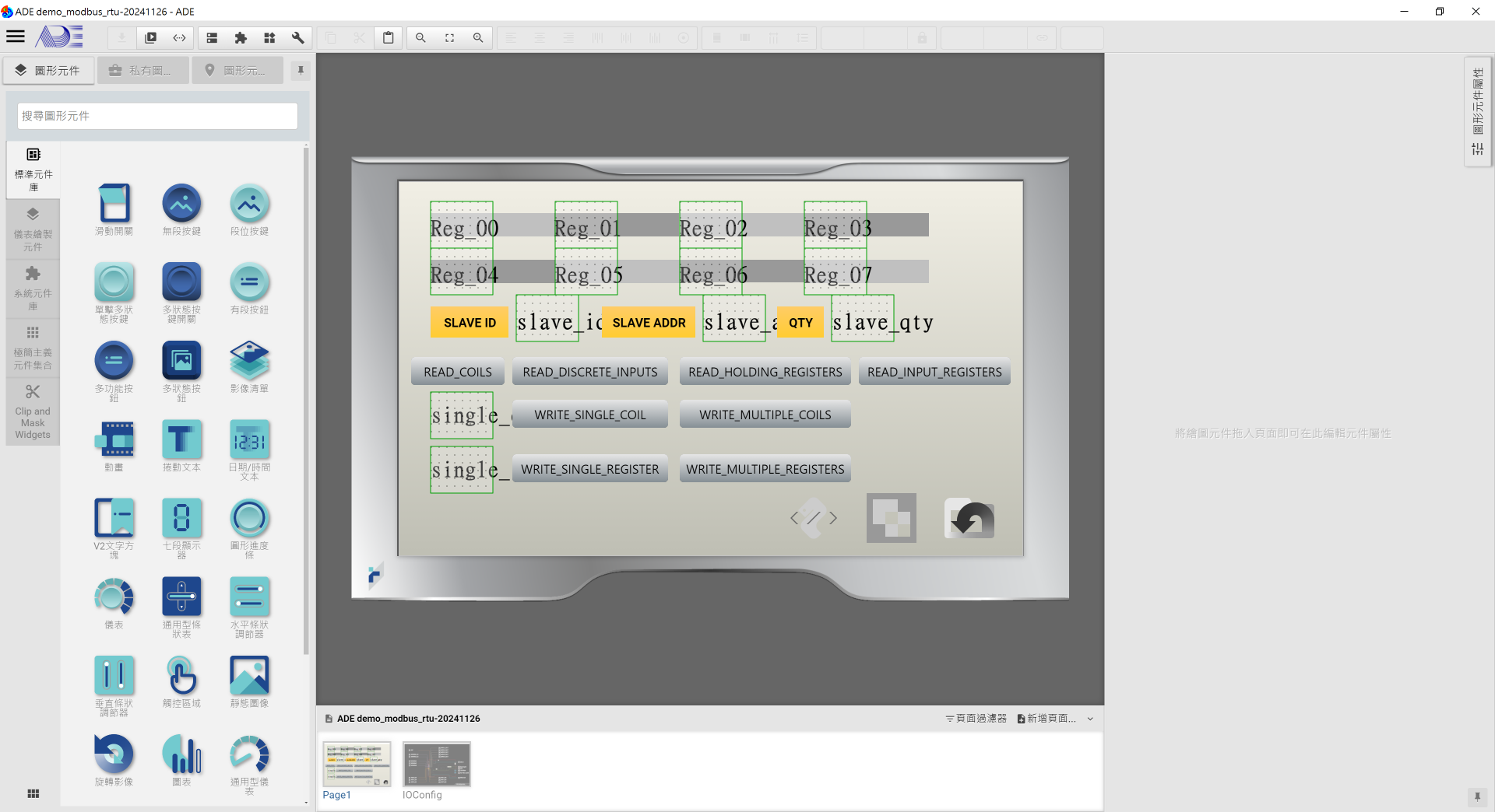 點選 系統選單 > 開啟... > ADE demo_modbus_rtu.epgz