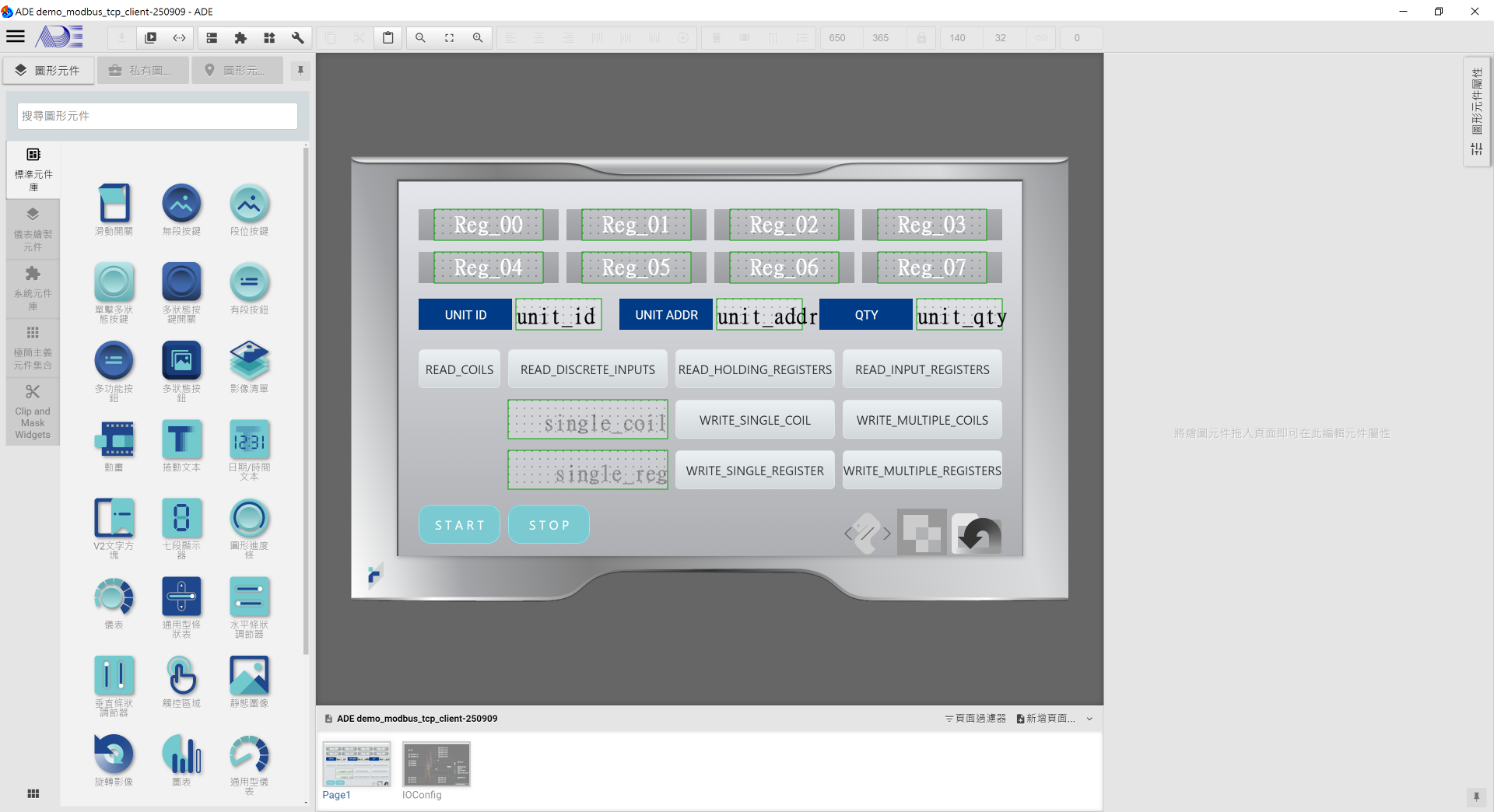 點選 系統選單 > 開啟... > ADE demo_modbus_tcp.epgz