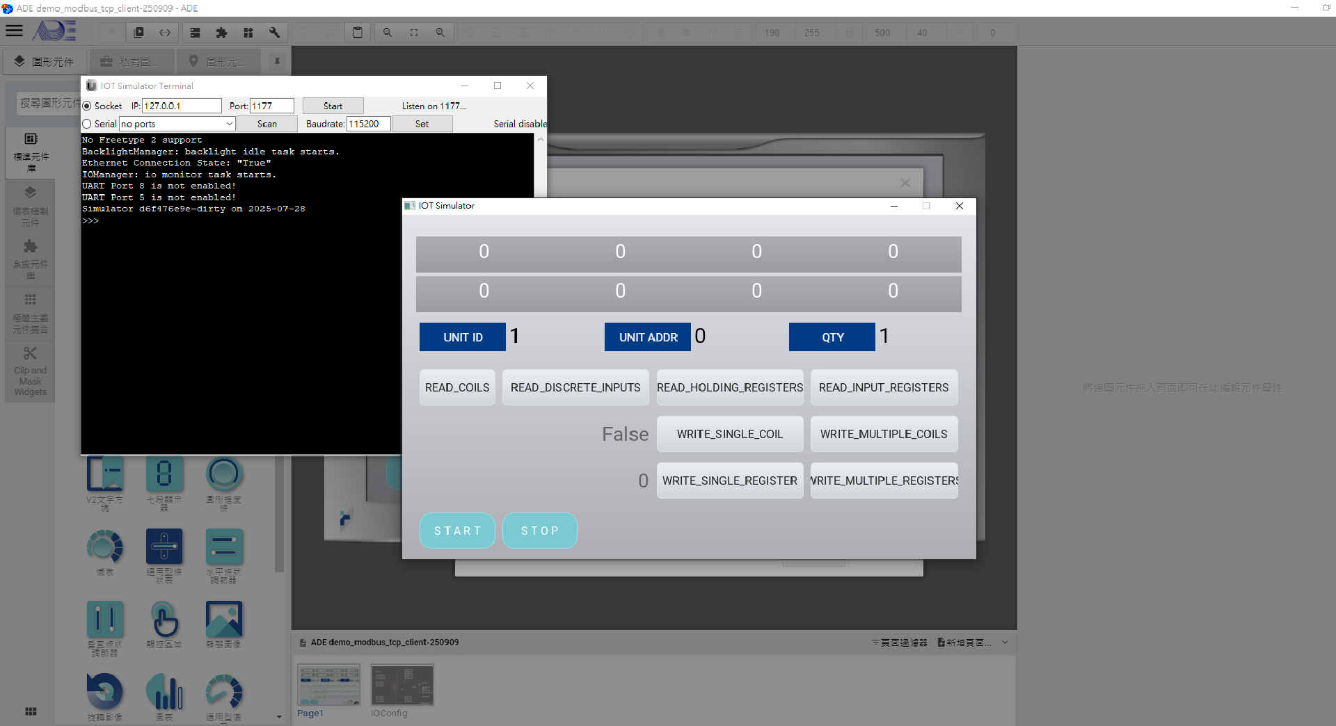3. init 設定 ip:127.0.0.1, port:502, 匹配好設定後方可連線成功